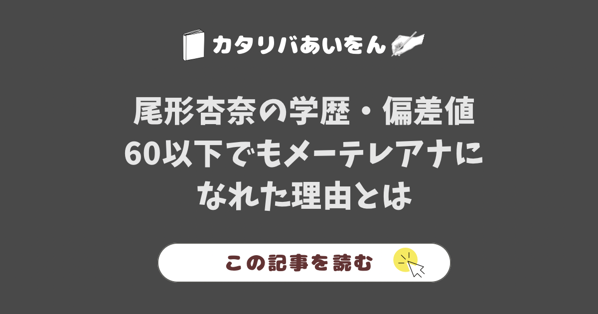 – 尾形杏奈アナの出身大学は、**愛知淑徳大学文学部国文学科(偏差値47.5〜55)**(Wikipedia公式情報)