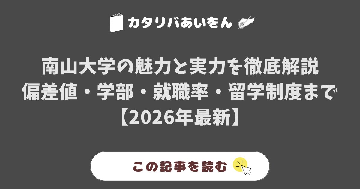 ※この記事の情報は2026年4月24日時点のものです。偏差値は年度・模試・情報源により変動します。最新情報は必ず南山大学公式サイトでご確認ください。