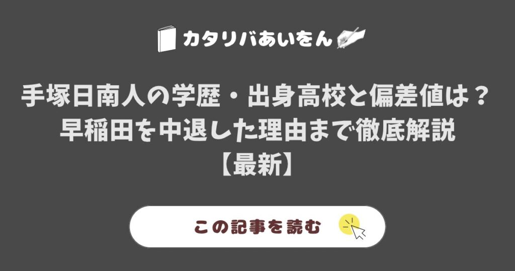 手塚日南人の学歴を徹底解説。 出身は東農大一高(偏差値69〜72)で、早稲田大学国際教養学部にAO合格後に中退。 スペイン留学が転機となった理由、学生時代の知られざるエピソードを、公式情報と一次資料をもとに2026年最新版でお届けします。 手塚日南人... -