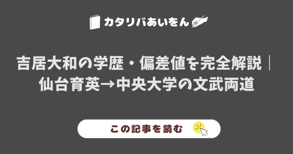 吉居大和選手の学歴・偏差値を完全解説。 仙台育英(偏差値58-62)から中央大学(57.5-60)への進路、スポーツ推薦の実態、文武両道の厳しさと就職価値を、42歳フリーランスが公式データと実体験で分析。 スポーツ推薦を考える高校生必見。 吉居大和の学歴...