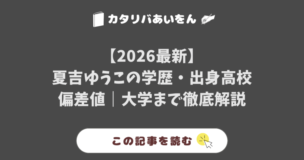 夏吉ゆうこの学歴・出身高校・偏差値を2026年最新情報で徹底解説。帝塚山学院高校(推定・偏差値52)と大阪音楽大学短期大学部(推定)の詳細、北海道芸術高校説の誤情報検証、軽音楽部エピソードも収録。高卒ブロガーやすをが9年の経験から解説。 夏吉ゆ...